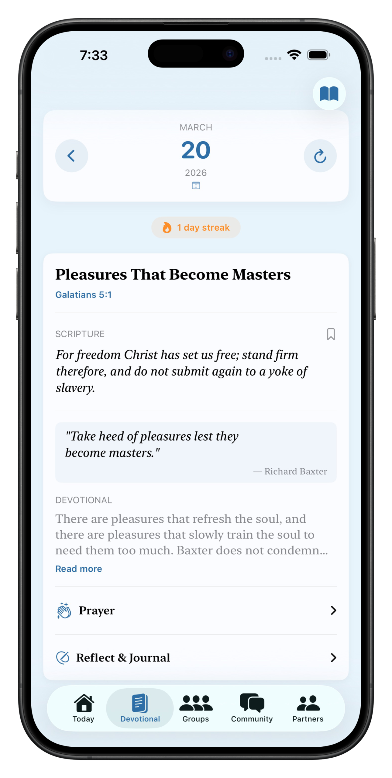 Rooted in Scripture and grace — not shame. Daily devotionals and prayer to anchor your journey.
